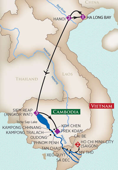 Experience the ultimate journey through Vietnam and Cambodia and discover the fascinating culture and wonder that these exotic countries have to offer. Your Mekong river cruise includes a variety of complimentary shore excursions, fine dining with all meals included on board, unlimited wine with lunch and dinner, complimentary beer, spirits and soft drinks during your cruise, onboard entertainment and much more.